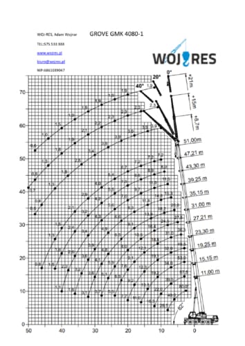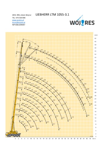 Dźwig samojezdny o maksymalnym udźwigu 35 ton. Długość wysięgnika 30 metrów + 15 metrów bociana hydraulicznego.