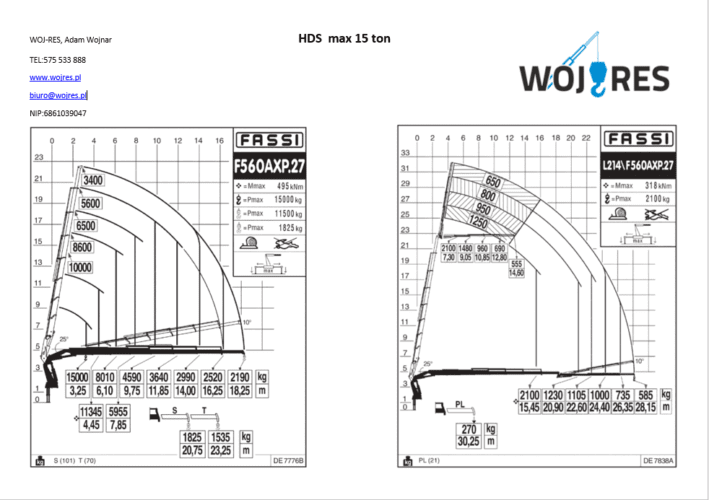 Dźwig samochodowy o maksymalnym udźwigu 15 ton i długości wysięgnika ponad 30 metrów. Wymiary paki załadowczej 2,5 m x 7,5-9 m, ładowność 10 100 kg.